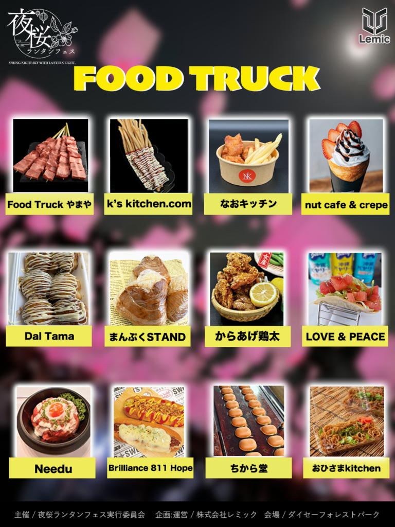 夜桜ランタンフェスでは、たくさんの屋台が出店しています。お腹が空いたら食べまくろう!